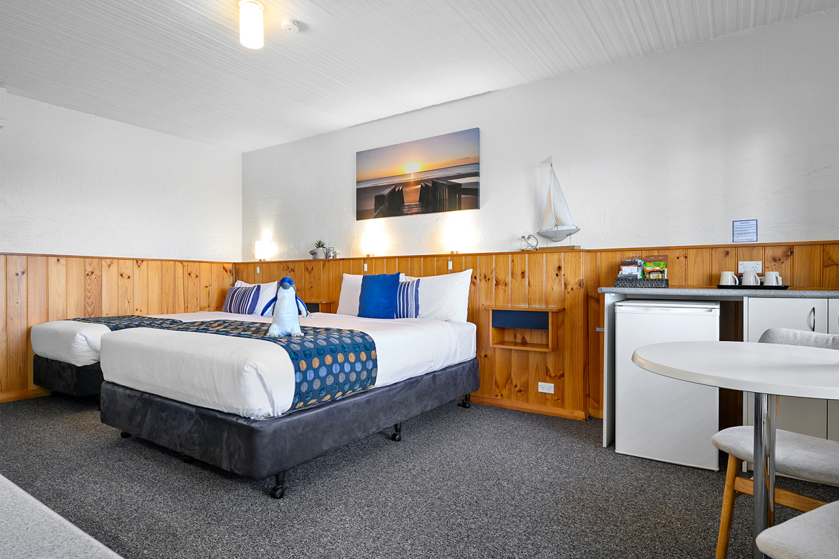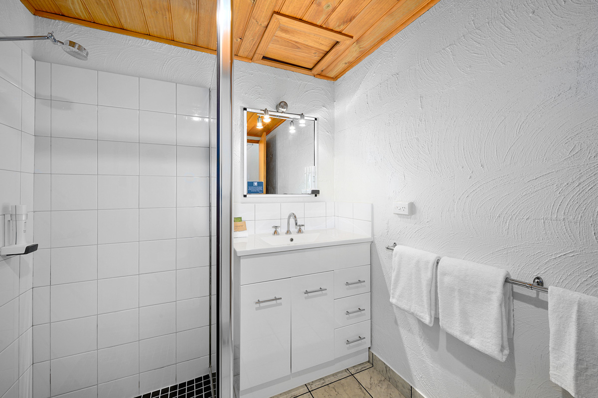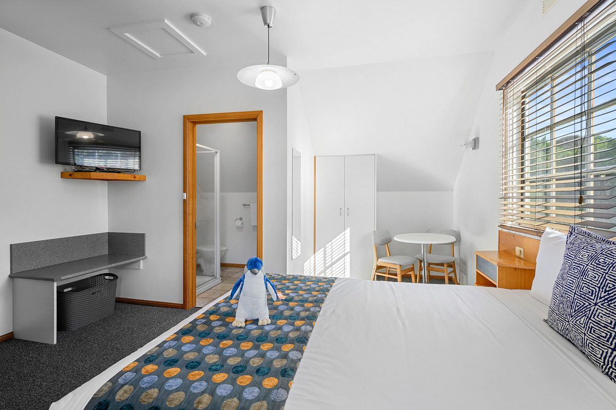 Feature a fully equipped kitchen, dining table and views of The Nut and Stanley with a private balcony. Rooms are on the ground level and parking is right at the door. One studio has a shower is over the bath and the other has a walk in shower.