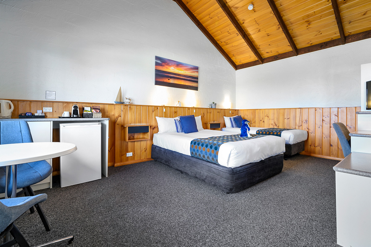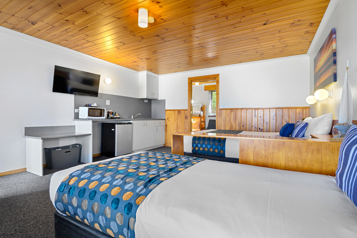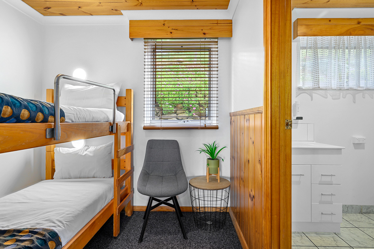 Spacious rooms with kitchenettes and magnificent views over Stanley and The Nut. Bunk beds are in a separate alcove, which does close off, but you have to go through that room to get to the bathroom.