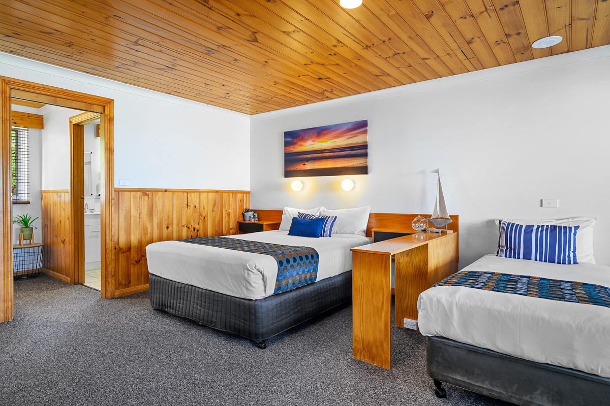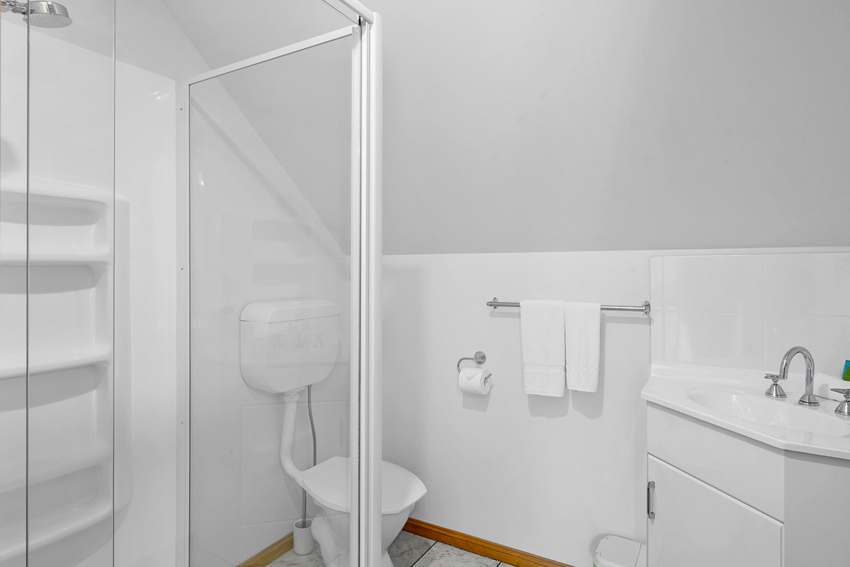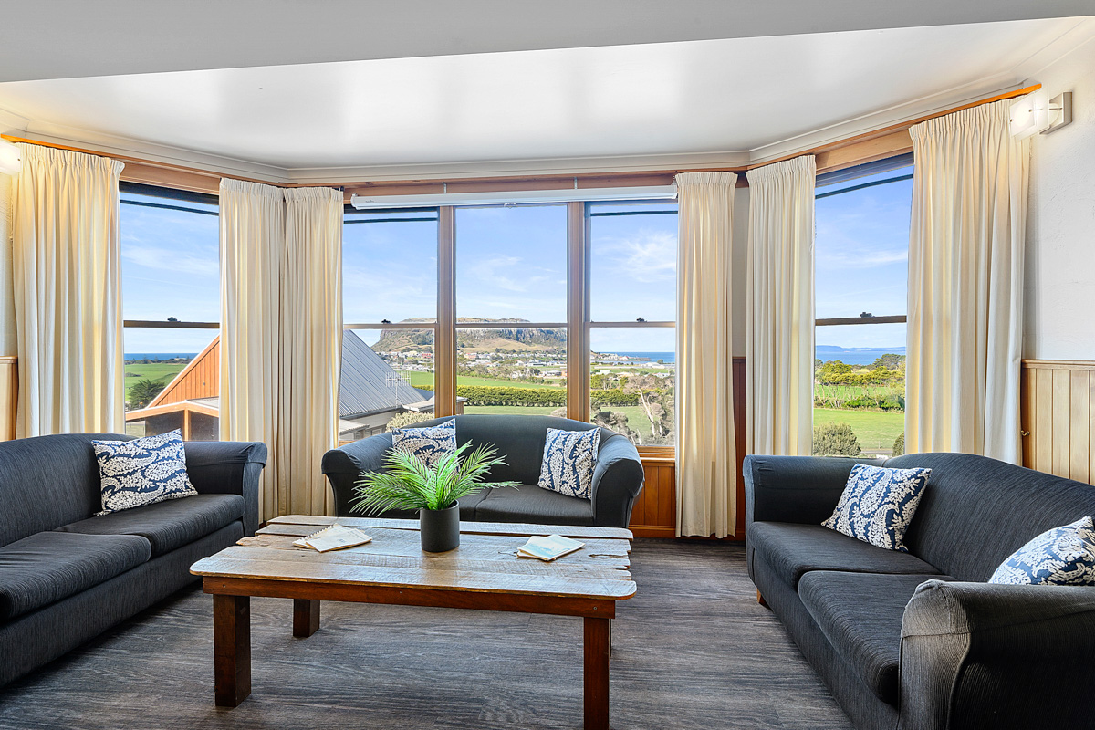 On the 2nd level all 3 bedrooms, open plan lounge, kitchen and dining area have views over Stanley, The Nut and surrounding beaches. Note that guests must walk through the two twin bedrooms to access the master bedroom with king bed.